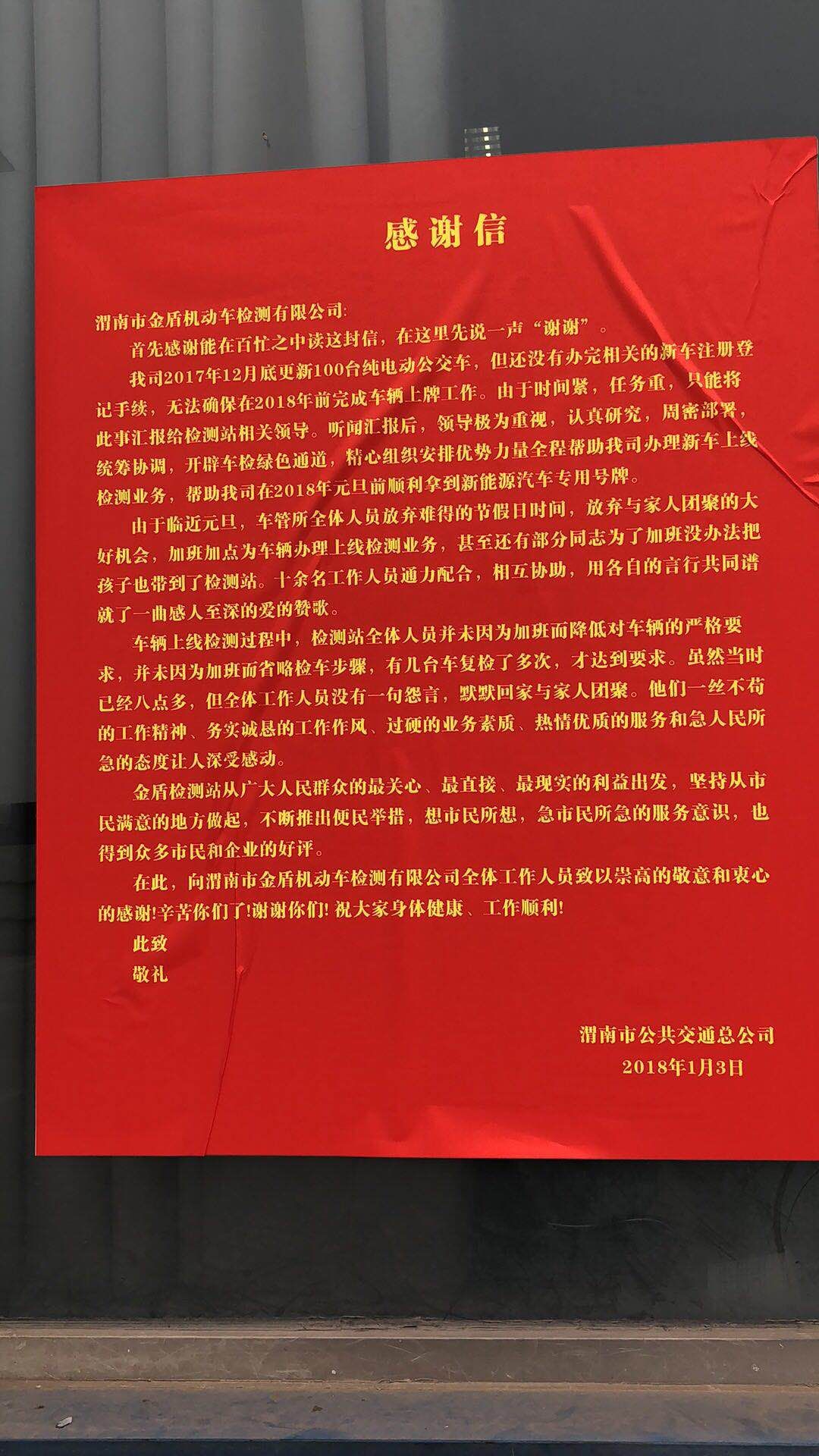金盾機(jī)動(dòng)車檢測(cè)公司收到一面錦旗和一封感謝信